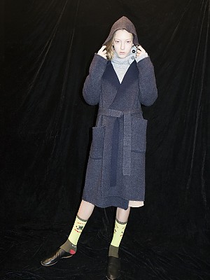 M7WO01A [Brushed Mohair Hooded Coat] DARK NAVY