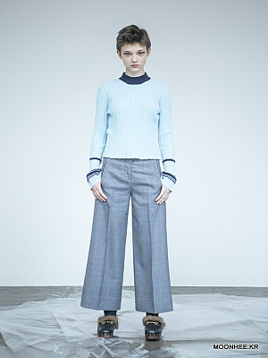 Coloring neck Short Sweater [BLUE]