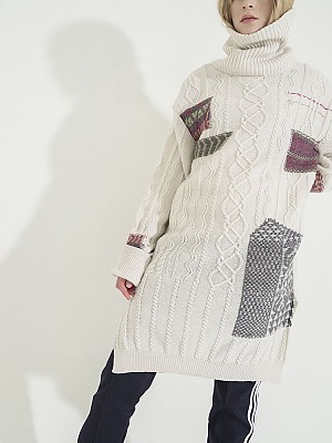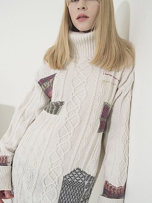 • Cable Multi-Jacquard Long Turtleneck Dress -IVORY (+0원)