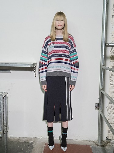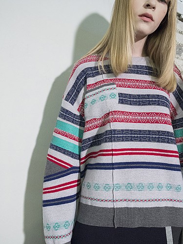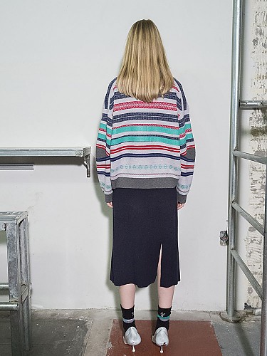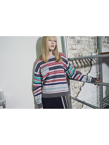 Multi-Colored Stripe Jacquard Pullover - D/GRAY