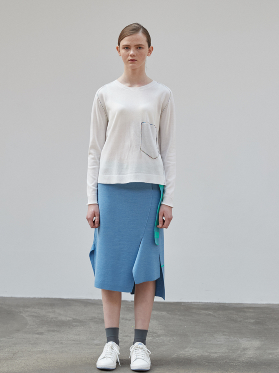 Block Check Unbalance Skirt [BLUE]